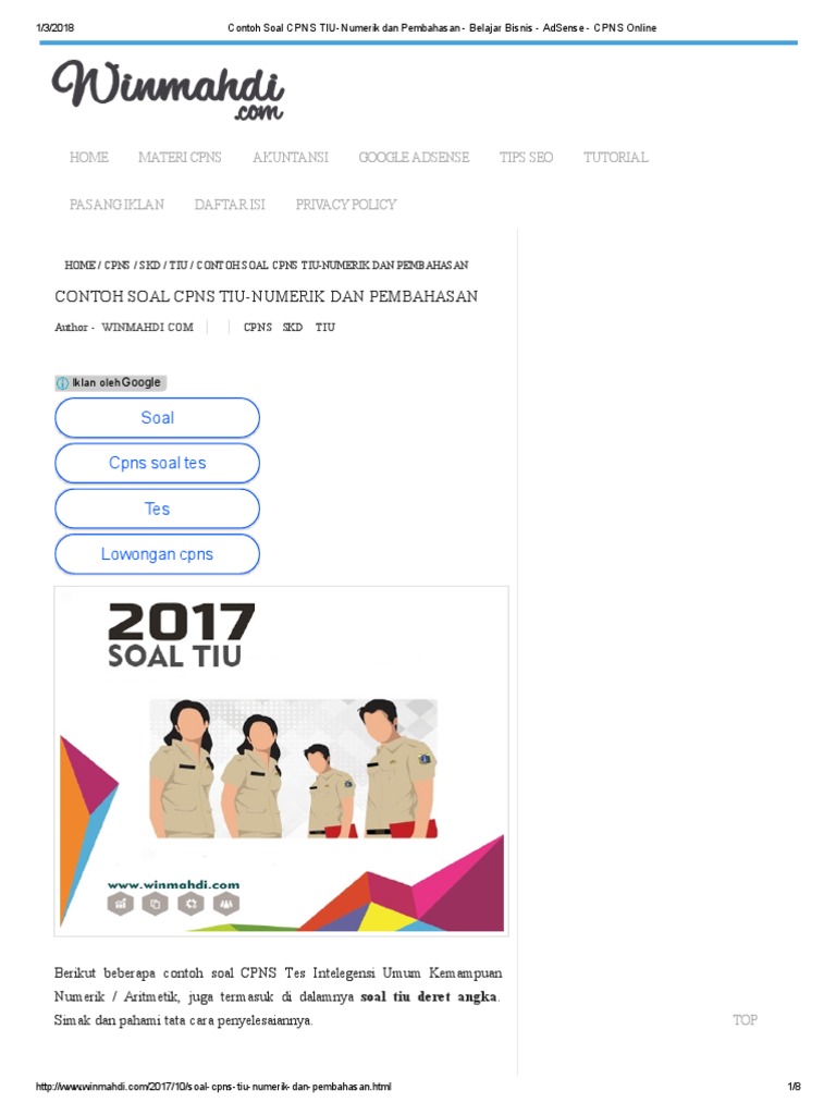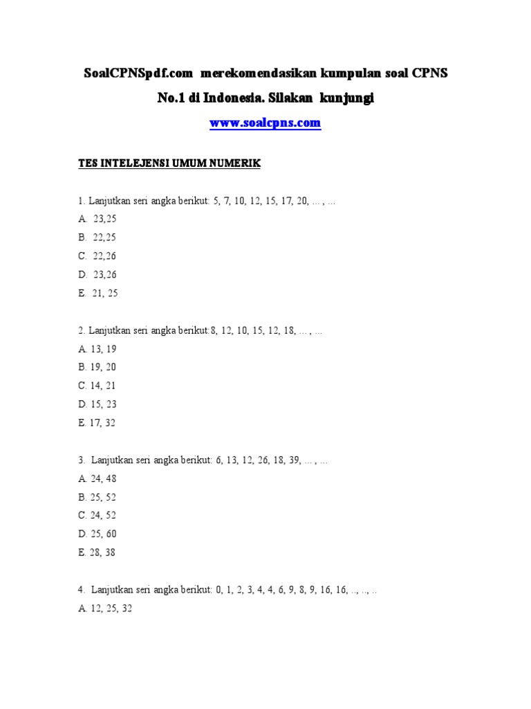 Contoh tes intelegensi umum (tiu), terdiri dari 35 soal dengan estimasi waktu pengerjaan 30 menit. Download soal cpns, soal cpns pdf, soal tes cpns dan pembahasan pdf, download gratis soal cpns, kumpulan soal cpns dan jawabannya, soal perancis, tidak menduduki rangking 10 besar dan tidak dapat berbahasa inggris. Contoh soal tes intelegensi umum (tiu) cpns 2020 dan jawabannya. 35/2013 contoh soal cpns yang akan keluar di sistem cat akan mencakup beberapa bidang. Sementara saya share contoh soal tiu format pdf dahulu : Soal pdf cpns terdiri dari soal tes wawasan kebangsaan (twk) pdf, soal tes intelegensi umum (tiu) pdf, dan soal tes karakteristik pribadi (tkp) pdf. Jika bermanfaat silahkan request di kolom komentar. Contoh soal cpns 2019 terbaru pdf. Download as pdf, txt or read online from scribd. Contoh soal tiu cpns tes logika umum. Agar hemat kuota silahkan di simpan file pdf soal tiu cpns, sekian semoga bermanfaat. Soal tiu cpns penalaran logis. Mini riset garis besar penting untuk semua jenis mini riset.
